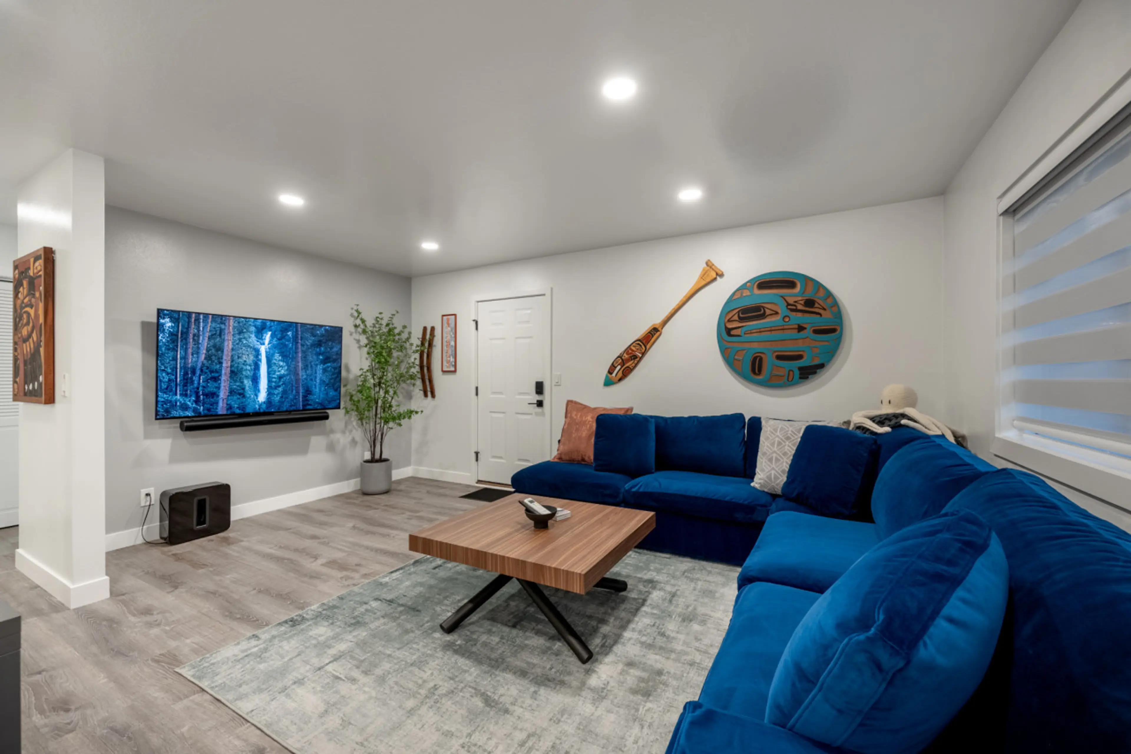 This apartment is stunning! Beautifully appointed and the space is so well thought out and well done that it maximizes every inch to be both simple and elegant. It was decorated with local artist prints and formline art. The sectional sofa has plenty of room for a family and the Murphy bed would delight kids. The main bedroom had luxurious linens and was so comfortable. A full sized washer and dryer made it easy to go home with a suitcase of clean clothes. After a long day, a soak in the deep tub was amazing. 12 of 10 would stay again!